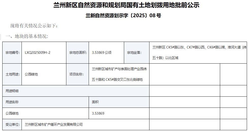 兰州新区自然资源和规划局国有土地划拨用地批前公示