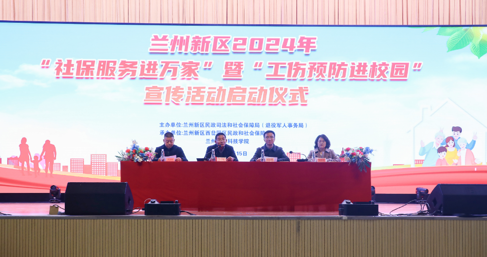 11月15日,兰州新区2024年“社保服务进万家”暨“工伤预防进校园”活动启动仪式在兰州信息科技学院体育馆启动。启动仪式由兰州新区民政司法和社会保障局主办,西岔园区民政和社会保障局、兰州信息科技学院承办,各园区民政和社会保障局分管领导、工作人员,学校领导、教职工及学生等共400余人参加了启动仪式。