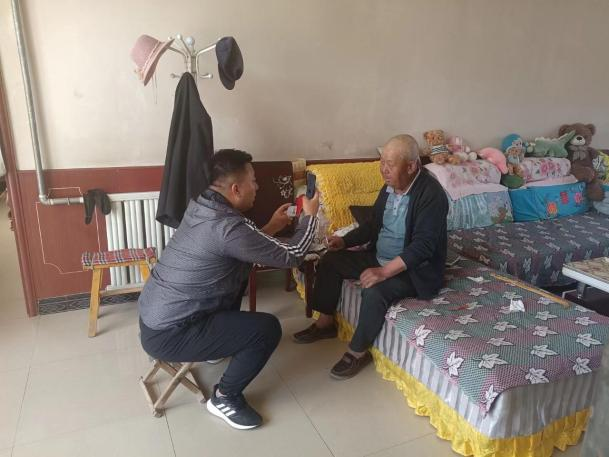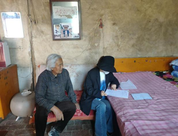 在西岔镇陈家井村村民家中村干部冯建东正在给高龄老人生存认证。