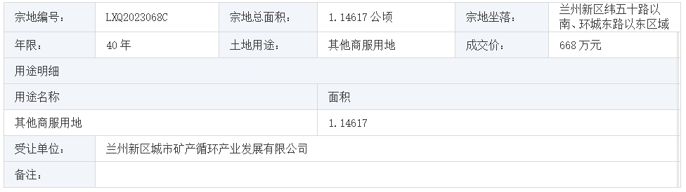 兰州新区自然资源局国有土地使用权招拍挂出让成交公示