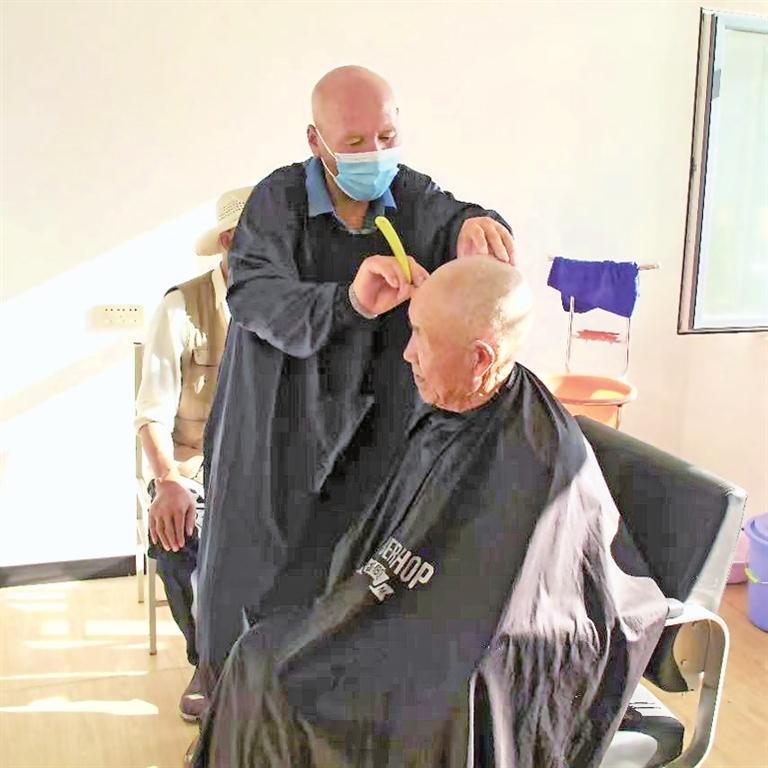社区志愿者为辖区老人上门理发。