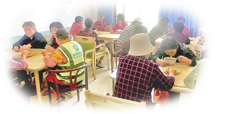 老人们在互助幸福院吃着热乎美味的幸福餐。