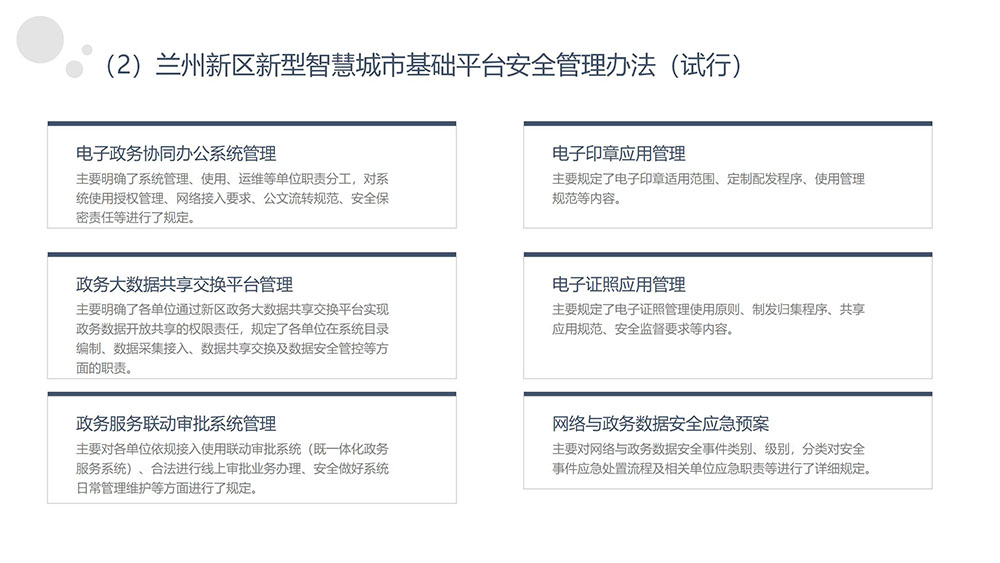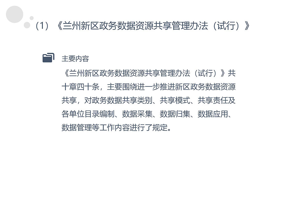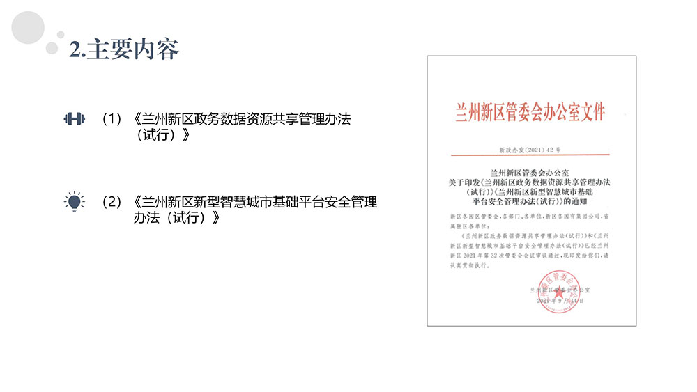 相关政策:兰州新区管委会办公室关于印发《兰州新区政务数据资源共享管理办法(试行)》《兰州新区新型智慧城市基础平台安全管理办法(试行)》的通知