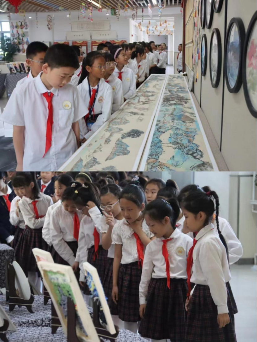 在中国共产党成立103周年之际,新区实验小学于7月2日在学校育爱楼二楼展厅举办“庆七一·颂党恩”书画作品展。