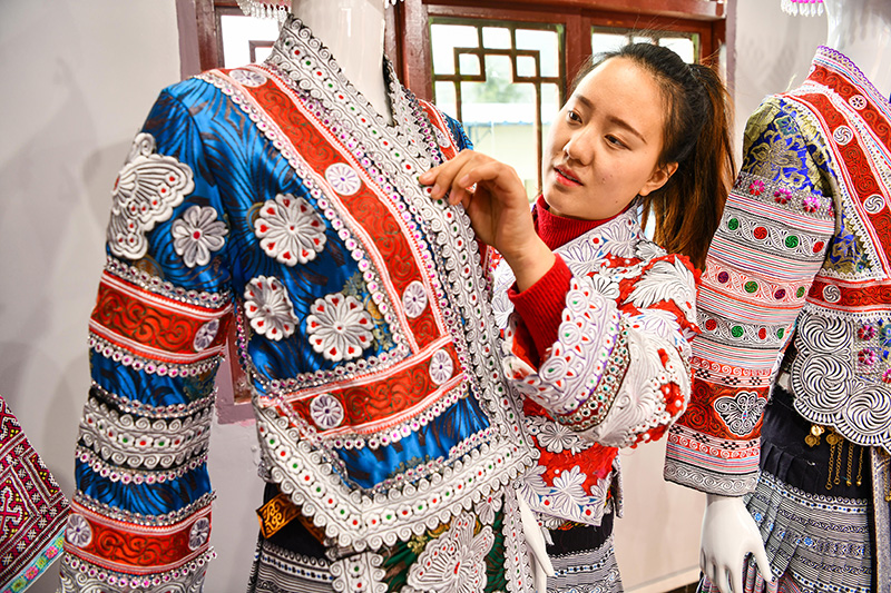 “非遗工坊曾是带动村民脱贫致富的‘扶贫车间’。随着化屋村成功脱贫摘帽,非遗工坊有了新使命,就是在不断吸纳村民就业、助力乡村振兴的同时,传承和发扬刺绣、蜡染等苗族非遗文化。”黔西市化屋村非遗工坊负责人杨文丽说,“认真学习党的二十大精神,让我的信心更足了。我要坚持‘守正’,掌握最正宗的苗族传统手工技艺,这是苗绣的‘魂’;同时还要‘创新’,结合市场新的消费需求融入新的设计理念,让传统苗绣更时尚。”