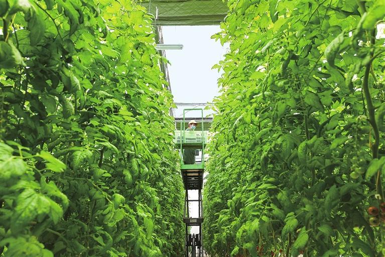 在新技术应用上,广泛应用生产管理自动控制、新型水肥一体化、生物生长动态监测等新技术,逐步应用物联网、大数据等技术,实现了生产控制高度自动化和周年连续产出,设施农业向智能化、绿色化迈进。