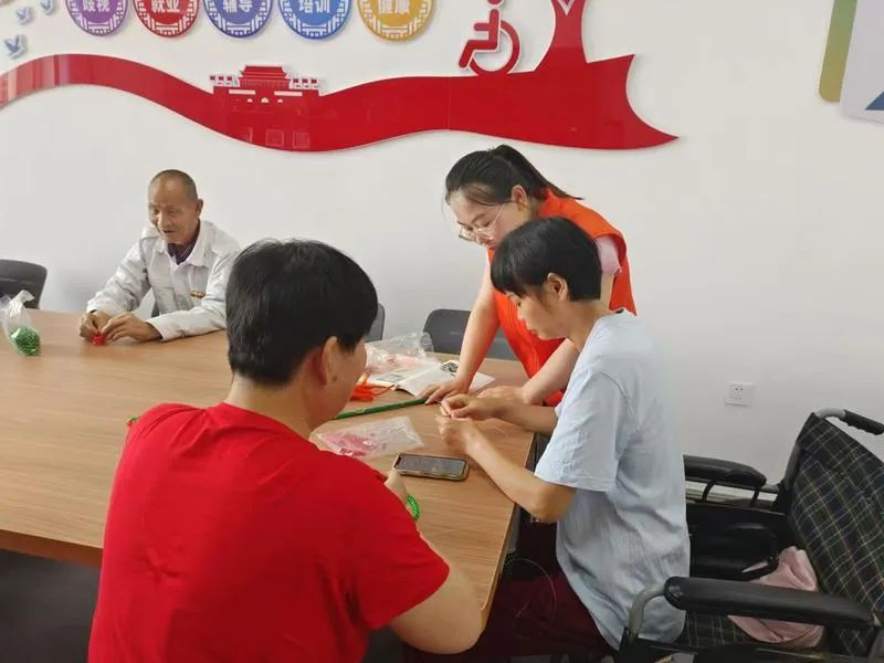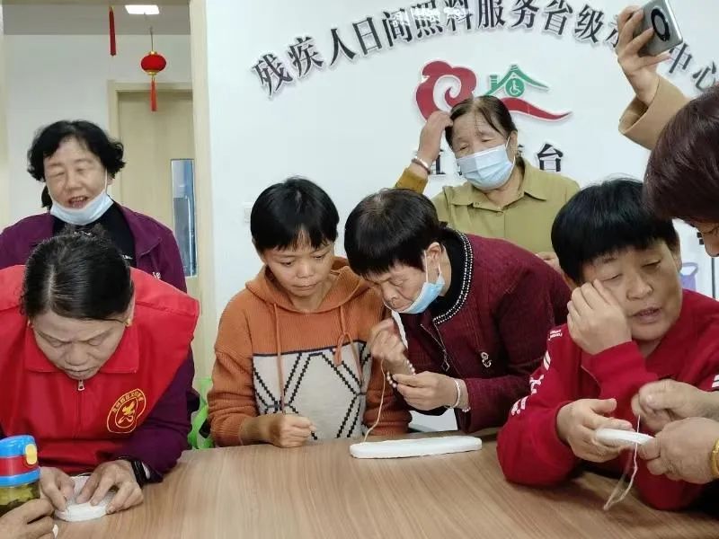 “我腿不好,出行全靠轮椅,因为残疾,也不愿意与别人交流。”邓女士说。今年8月,她在社区工作人员动员及家人的陪伴下,抱着试试看的心态来到残疾人日间照料中心进行生活体验,“起初我是不愿意来的,待了几天发现这里很好,不仅有免费午餐,也有一些适合我们日常康复锻炼的器具,中心的工作人员也是给我们一些专业的疗护,我也可以教其他残疾人朋友做手工,每天感到很开心!”在辅助性就业工坊,邓女士一边说,一边做着自己喜欢的手工艺品。其他的残疾人有的聚在一起看书聊天,有的跟着邓女士学习手工活,有的在医护人员指导下进行康复训练,屋里不时传来阵阵欢笑。