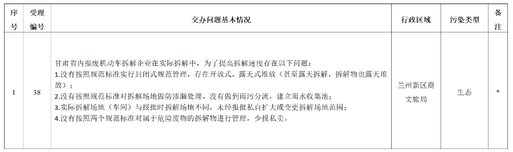 甘肃省第四生态环境保护督察组交办第十四批群众信访举报情况