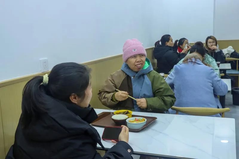 幸福食堂宽敞明亮的餐厅环境让人眼前一亮,用餐区干净舒适,桌椅排列得井井有条。记者浏览菜单时发现,菜品丰富多样,荤素搭配均衡,从地道的各式面食到精致的小炒,应有尽有。