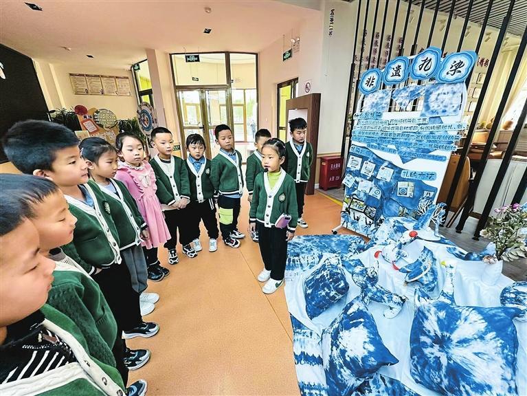 孩子们在“兰州新区第二幼儿园非遗体验馆”参观。