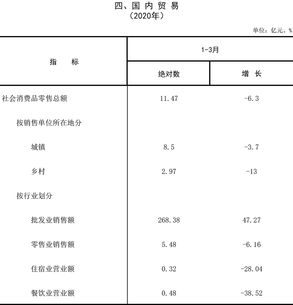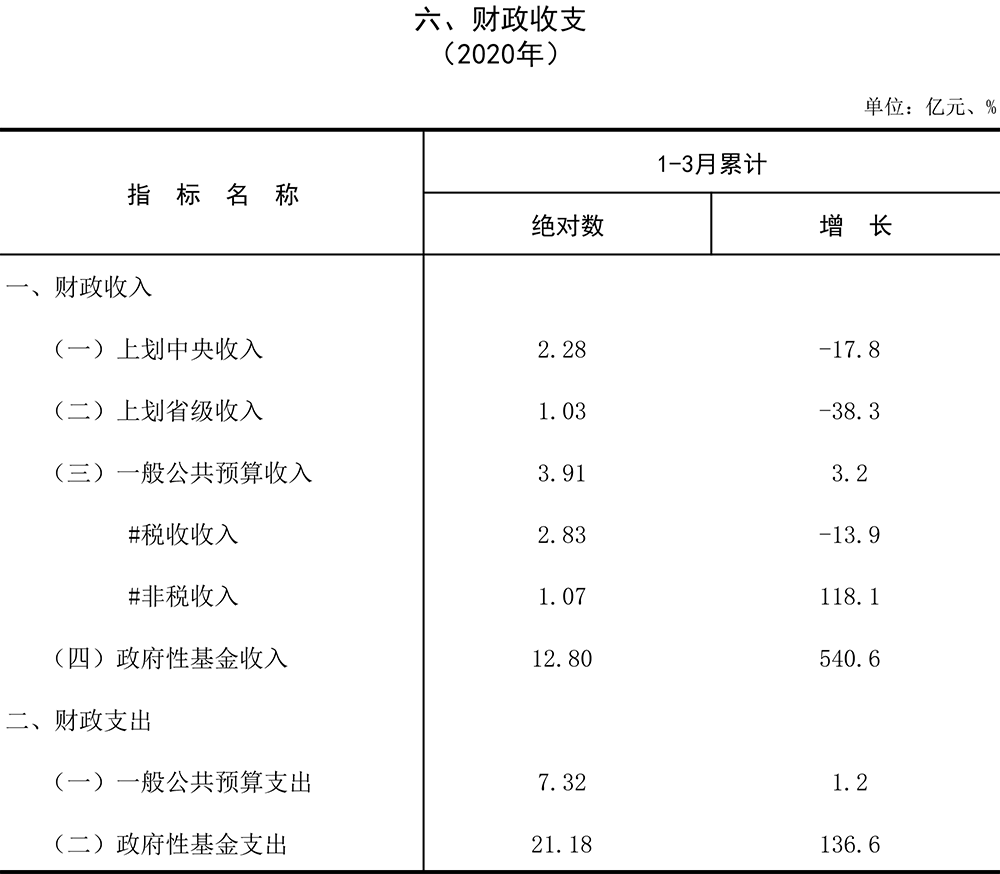 2020年一季度主要经济指标数据