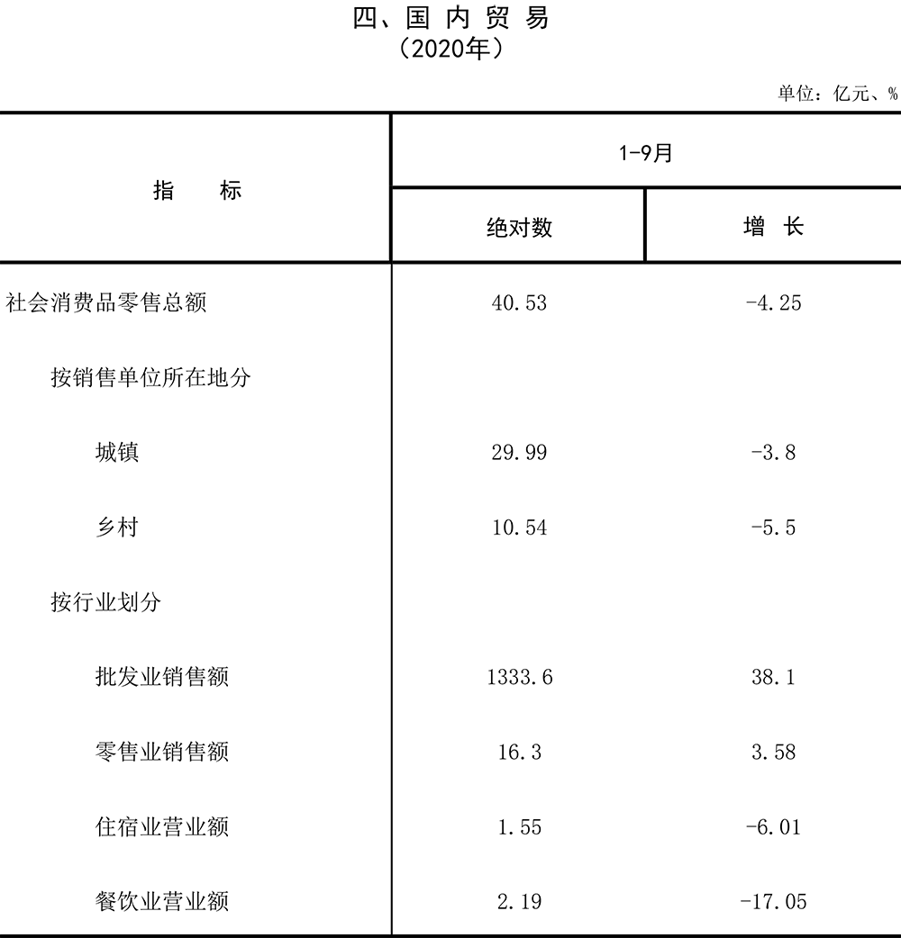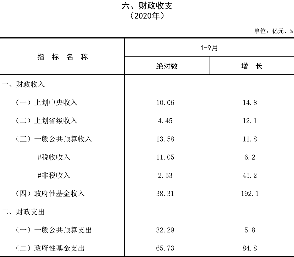 2020年前三季度主要经济指标数据