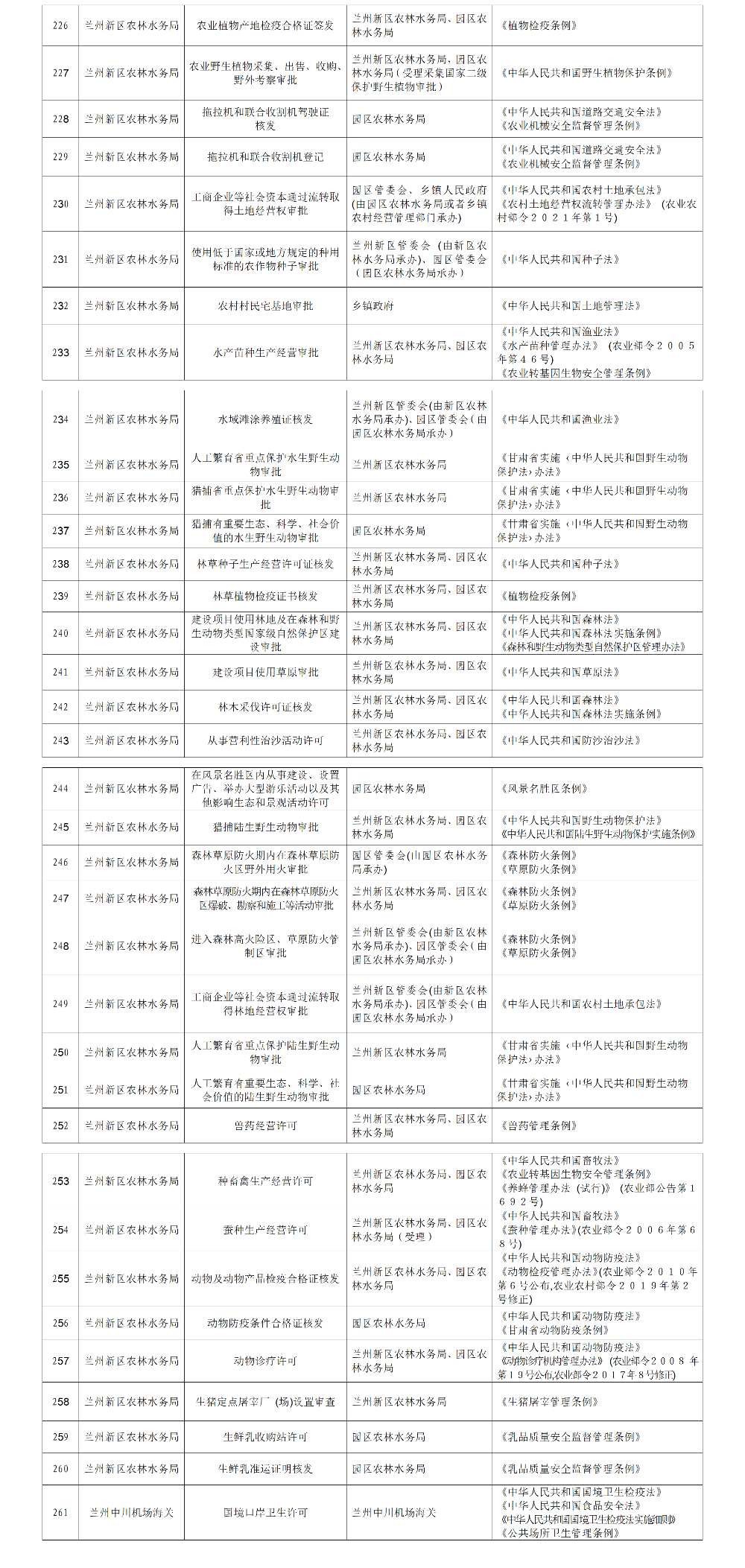 兰州新区行政许可事项清单(2022年版)