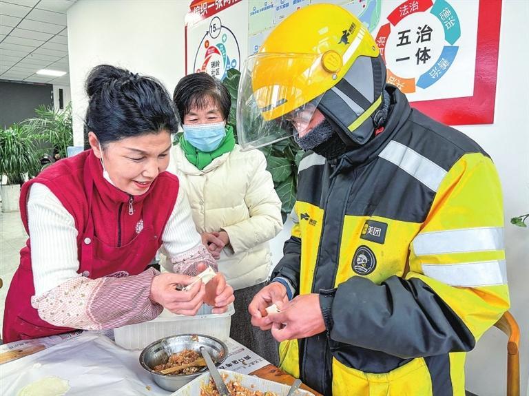 瑞岭社区联合爱心企业在新业态群体劳动者驿站开展“冬至饺子香 暖‘新’更暖胃”活动,进一步增强新就业群体、户外工作者的幸福感与获得感。