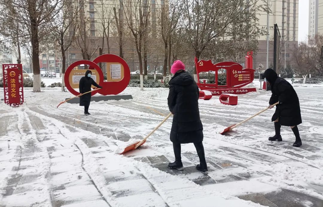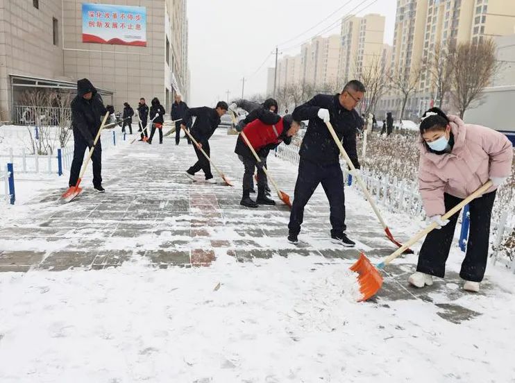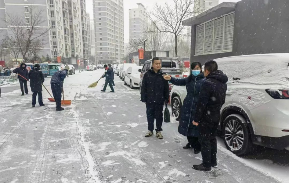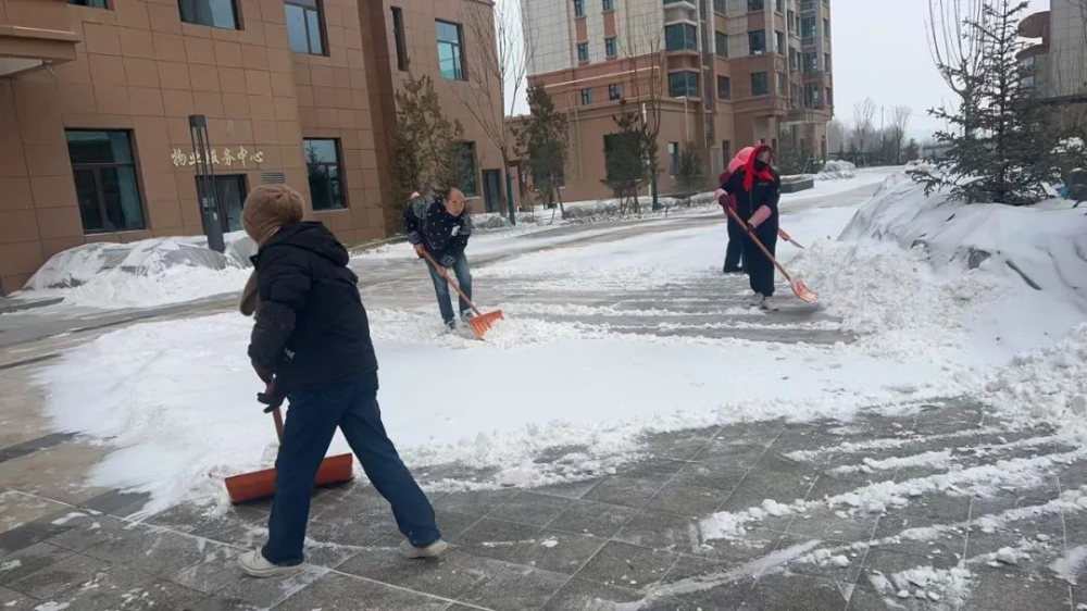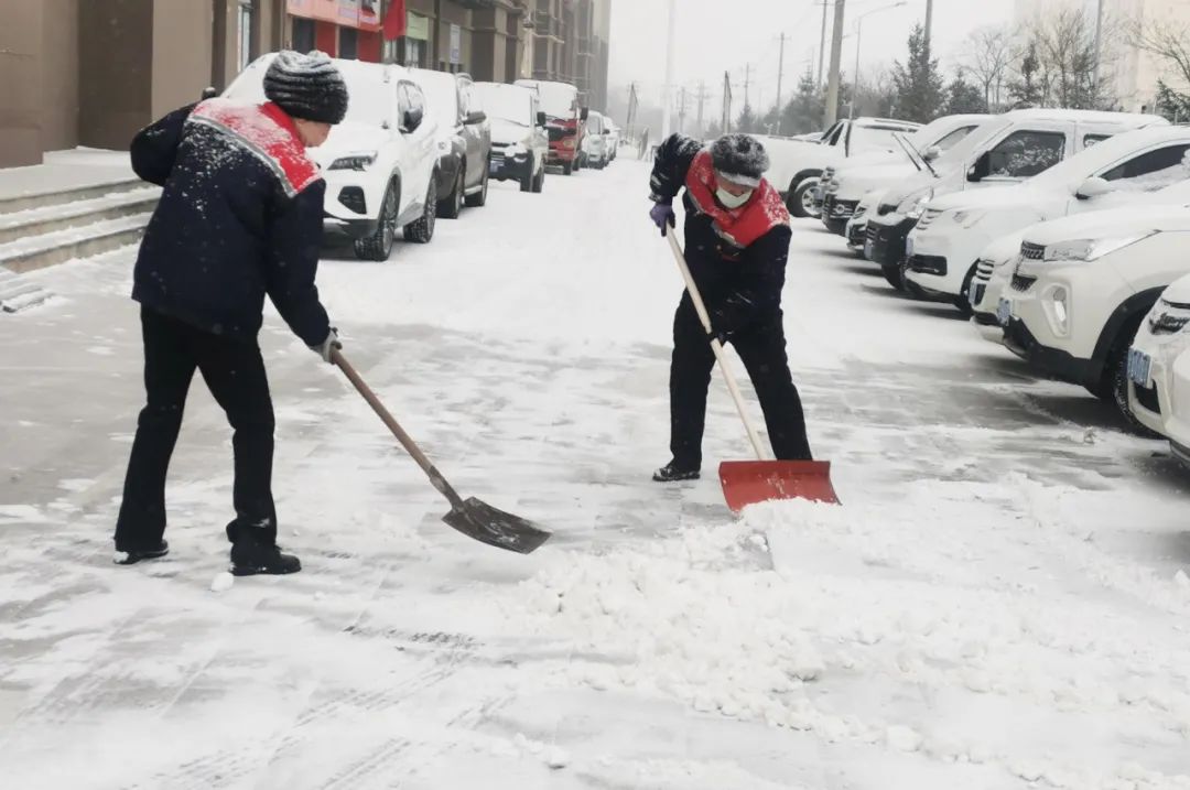 此外,辖区45家物业服务企业组织近3000人次对84个小区开展 “汗水融冰雪 安全暖人心”除雪行动,及时清理小区内部主干道,门厅易滑区域、重点防滑路段的积雪,有效应对降雪天气造成的出行难问题。