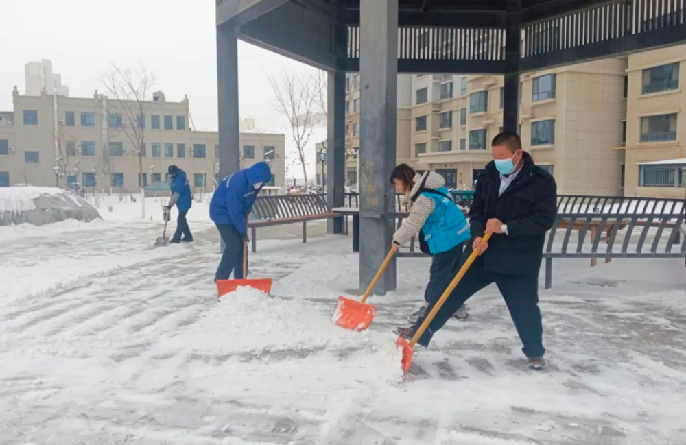 各社区联合物业、市政环卫及临街商户成立了扫雪除冰突击队,对辖区内的主次干道、人行步道、公共活动区域及楼栋出入口等重点部位进行积雪清理。寒风中,大家干劲十足,热情不减,忙碌的身影在皑皑白雪中构成了一道温暖的风景线。