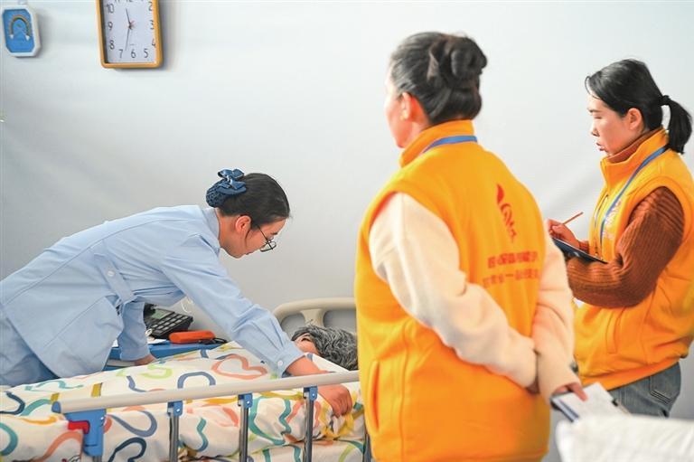 养老护理比赛中,参赛选手照料“患者”