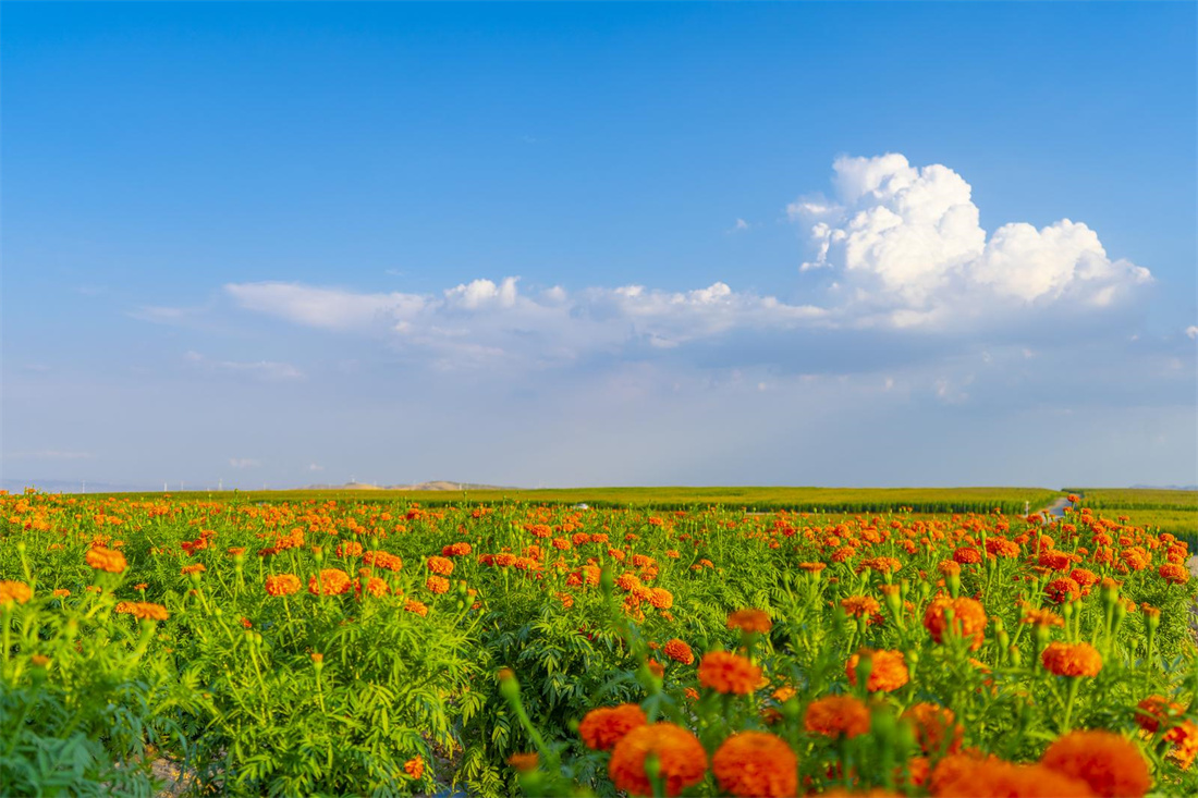 新区千亩万寿菊迎来盛花期