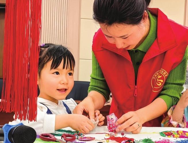 工作人员陪孩子们玩耍