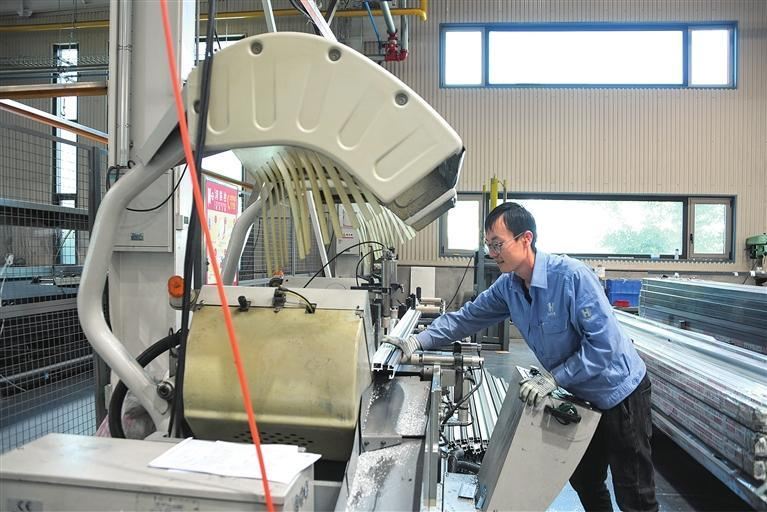 工人正在切割铝合金型材
