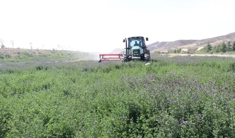 收割机正在进行苜蓿收割作业